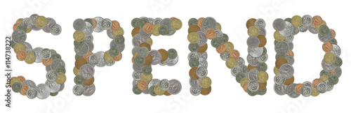 spend, coin, old, text, pay, paying, borrowing, loan, financial, finance, saving, signs, symbol, retro, white background, shopping, budget, wealth, capital letter, alphabet, currency, message, banking, idea, shiny, consumerism, economy, white, no people, nobody, cost, account