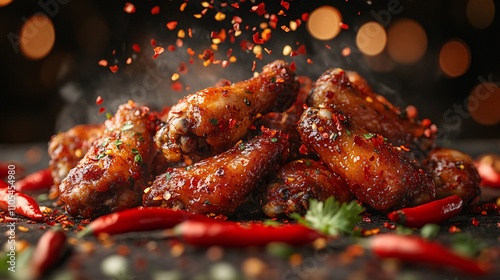 fried, chicken, wing, spicey, chili, pepper, close, up, food, meal, snack, cookery, delicious, epicure, grilling, banquet, eatery, tasty, savoury, dinner, party, garnish, cook, preparation, plate, ingredient, favor, crunchy, crispy, heat, sauce, receipe, sharing, culinary, vibrant, herb, festive, celebration, platter, feast, photo, spice, fresh