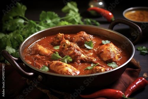 Spicy Goan Style Chicken Vindaloo Curry with Garam Masala - Hot and Flavorful Dhaba Punjabi Dish of North Indian Non-Vegetarian Cuisine