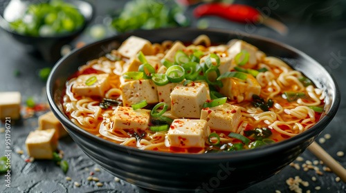 Spicy Tofu Noodle Soup Bowl - Realistic Food Photography