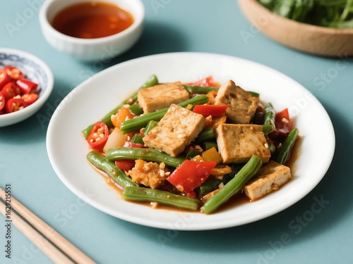 tempeh, green beans, garlic, ginger, soy sauce, alimentary