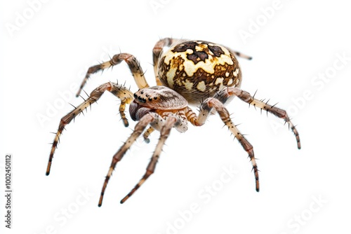 Spider Isolated On White. Orb-Weaver Spider (Araneus ventricosus) from Asia with Big Background