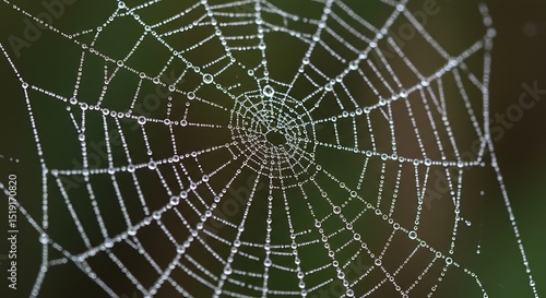 spider's web, web, dew, drop, closeup, detailed, intricate, wet, nature, morning, outdoors, macro, clear, transparent, round, texture, pattern, radial, close, droplet, water, bead, shiny, morning dew, natural, beauty, structure, thin, line, geometric, circle, center, sharpened, backlight, dark, green, background, serene, peaceful, fresh, isolated, insect, biology, spider, animal, habitat, summer, vibrant