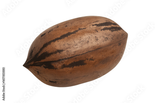 Spinning pecan nut against transparent background, highlighting rich brown coloration and detailed surface pattern for culinary design projects