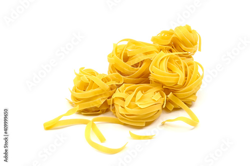 pasta, dried, tagliatelle, nest, isolated, spiral, italian, food, closeup, background, cooking, copy space, diet, italy, foodstuff, healthy, no people, raw, white