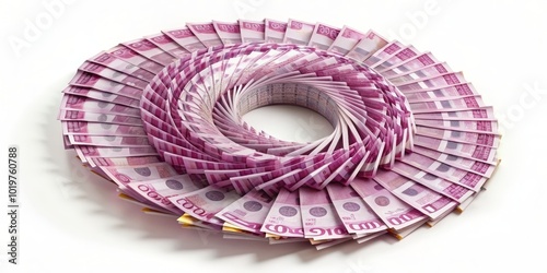 Spiral of 500 Euro banknotes representing price increase or profit growth, 500 Euro, banknotes, money, currency, finance, wealth