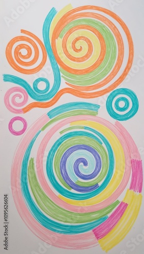 Spirals and loops in pastel colors hand drawing