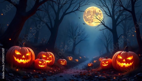 halloween, pumpkin, jack-o-lantern, porch, celebrate, grave, cemetery, lantern, mystery, night, dark, moon, horror, skittish, fog, tomb, devil, nightmare, concept, celebration, gravestone, moonlight, jack, art, illustration, vector, haunted, bat, dead, trick or treat, composition, modern, banner, creepy, fantasy, ghost, moody, monster, silhouette, skittish, background, computer graphic, copy space, full moon, spider