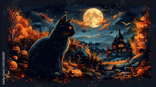 cat, night, pumpkin, black cat, forest, creepy, autumn, october, scarey, halloween, haunted, skittish, moon