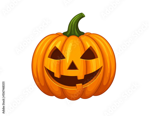 halloween, pumpkin, skittish, scarey, autumn, october, holiday, celebration, fall, orange, green stem, face, grin, smile, creepy, festive, tradition, isolated, white background, illustration, design element, graphic, digital artwork