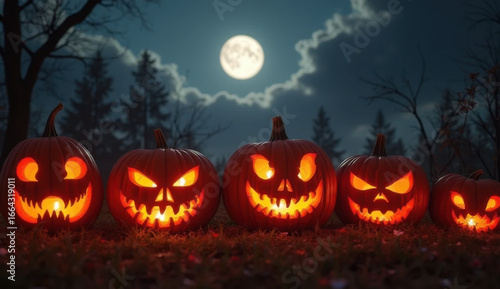 halloween, pumpkin, night, full moon, moonlight, skittish, scarey, glow, light, darkness, autumn, fall, season, holiday, celebration, forest, tree, horror, creepy, eerie, atmosphere, decoration, front yard, garden, night time, illuminated
