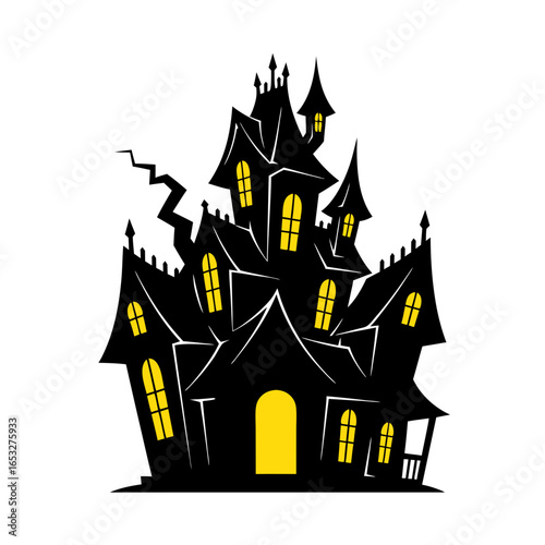 Spooky vector illustration isolated haunted house with glowing windows dark silhouette halloween concept graphic