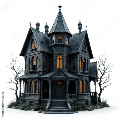 Spooky Victorian Mansion Halloween House Night Scene 3D Render
