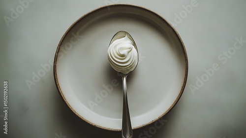 spoon, cream, plate, dollop, whipped cream, dessert, food, minimalist, simple, white background
