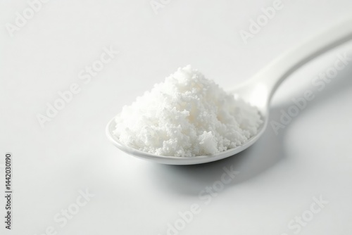 Spoonful of white sugar against white backdrop, dessert, product photography