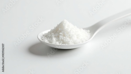 Spoonful of white sugar against white backdrop, white, delicious, product shot