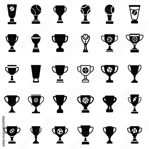 Sport cup vector silhouette set.Champions winner reward symbol.Sports trophies silhouettes