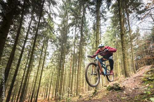 shaft, autumn, activity, athlete, bicycle, pathway, side, outside, descent, outside, dead leaf, man, rolled, fir, jump, path, underbrush, sport, 1, mountain bike, front view, sideview, bike, mountain bike, extreme sport, foliage, leaf