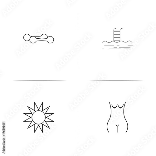 swimming pool, sun, icon, vector, illustration, set, pictogram, symbol, signs, design, art