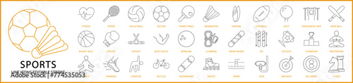 Sport icons. Sport icon set. Sport line icons. Vector illustration. Editable stroke.