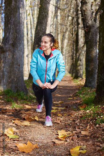 Sport. Runner. Young sportswoman stretching and preparing to run
