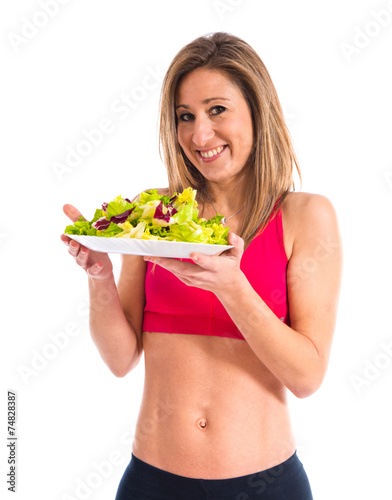 salad, food, healthy, fresh, green, lettuce, meal, vegetarian, nourishment, vegetable, leaf, diet, plate, epicure, olive, fitness, gym, training, exercise, body, athlete, fit, strength, power, strong, sport, lifestyle, bodybuilder, health, slim, powerful, athletic, activewear, care, woman, beautiful, isolated, girl, female, pretty, person, adult, hispanic, attractive, young, blond, background, fashion, people