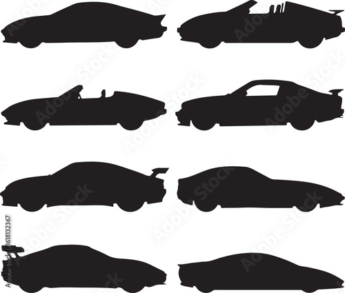 sports car, silhouette, black-and-white, automotive, vehicle, speed, performance, design, modern, classic, racing, aerodynamic, sleek, exterior, half face, white background
