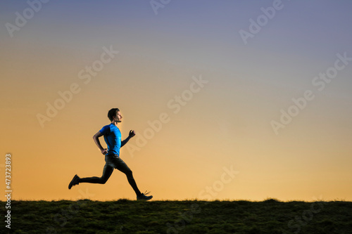 sportsman, jogging, dedication, sunset, copy space, 1, people, sport, adult, man, german, outdoors, atmosphere, fitness, athlete, activewear, active, lifestyle, healthy, health, young, male, running, caucasian, exercising, vitality, clear, sky, determination, training, jogger, runner, track, event, athletic, ground