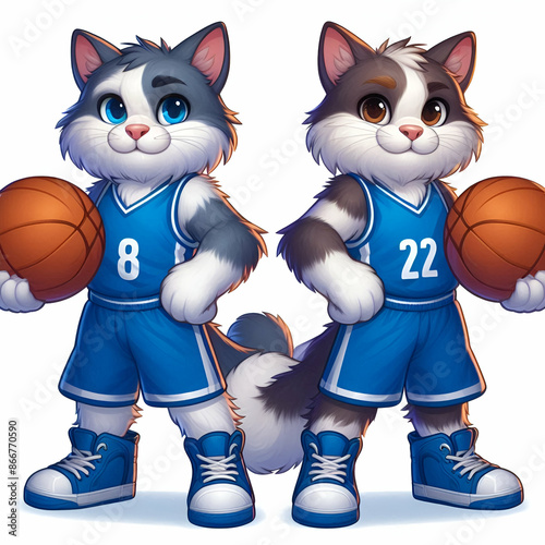 Sporty Feline Duo | Cats in Basketball Uniforms | Dúo Felino Deportivo | Gatos en Uniformes de Baloncesto