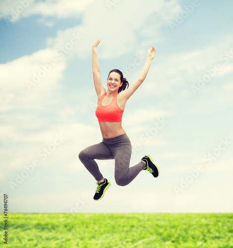woman, jumping, girl, fun, flight, air, jump, freedom, smiling, happy, happiness, winner, succeed, fly, flying, light, weight, loss, sporty, sport, young, playful, fitness, healthy, energetic, exercise, strength, physical exercise, power, muscle, activewear, beautiful, body, fit, health, health care, slim, female, slender, bodycare, care, latin, hispanic, teenage, teenage, green, grass, blue, sky, outdoors