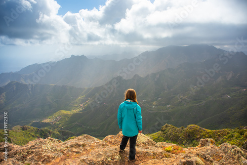 Sporty woman hiking in Anaga Mountains Taganana Tenerife, Canary island resort