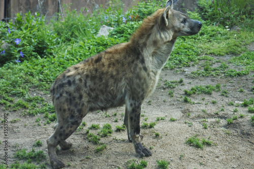 Spotted hyena is watching and concentrating something.