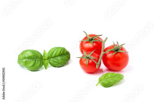 sprig, fresh, tomatoes, green, basil, isolated, white, background, red, leaf, vegetable, herb, food, ripe, organic, healthy, object, plant, eating, material, succulent, spice, vegan, copy, horizontal, steam, closeup, cherry, stem, colours, group, ingredient, bunch, raw, rustic