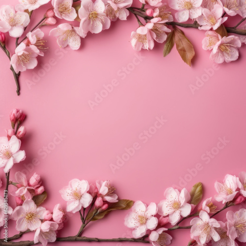 Spring banner, branches of blossoming cherry against background.Pink sakura flowers, dreamy romantic image spring