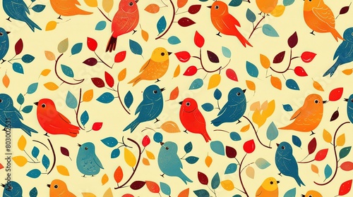 robin, sparrow, song, bird, flower, flora, tree branch, cute, happy, springtime, season, forest, jungle, wood, vine, bush, shrub, cheerful, minimal, minimalism, doodle, cartoon, childcare center, seamless, pattern, playful, whimsical, adorable, sweet, fun, joyful, colourful, bright, lively, delightful, charming, illustration, design, background, repeat, texture, decorative, childhood, cartoonish, quirky, lovely, amusing, character