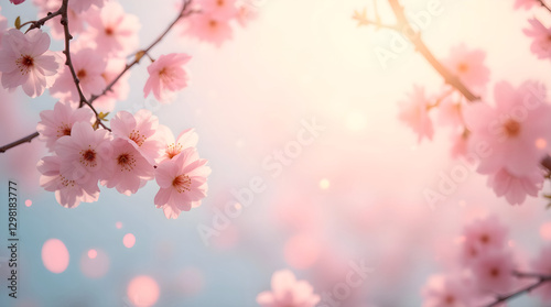Spring blossom background with soft pastel colors and bokeh lights. Dreamy floral scene with cherry blossoms in bloom