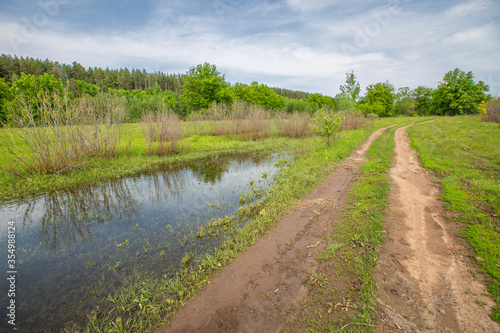 spring flood, overflowed lake, flood meadows
