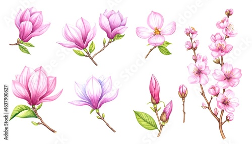 flower, spring, magnolia, cherry blossom, blossom, pink, floral, beauty, nature, illustration, botanical, art, watercolor, delicate, pretty, pastel, branch, bud, blooming, vibrant, spring flower, painting, digital artwork, floral pattern