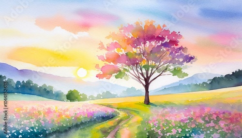 tree, park, lunch, refreshing, travel, walk, going out, spring, bright, sparkling, green, yellow-green, summer, wallpaper, illustration, background, frame, picture, copy space, watercolor, paint, beautiful, pretty, smear, smudge, meadow, field, grass, wide, nature, autumn, winter, landscape, view, scenery, landscaped