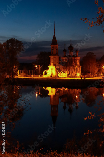 Spring in Vologda. Night scene. Church of the meeting of the Lord. Reflection i