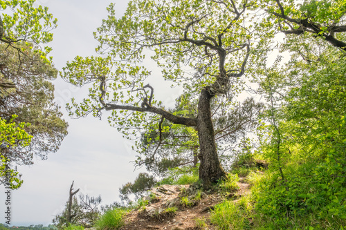 tree, mountain, nature, landscape, travel, cliff, spring, summer, environment, forest, foliage, fresh, green, natural, texture, alps, beauty, canyon, cloud, day, grass, high, hill, ideal, morning, park, peak, range, rural, scene, scenic, silhouette, top, tour tourism, trunk, vale, weather, willow, wood