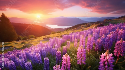 Springtime Hyacinth Hillside Bliss - AI Generated