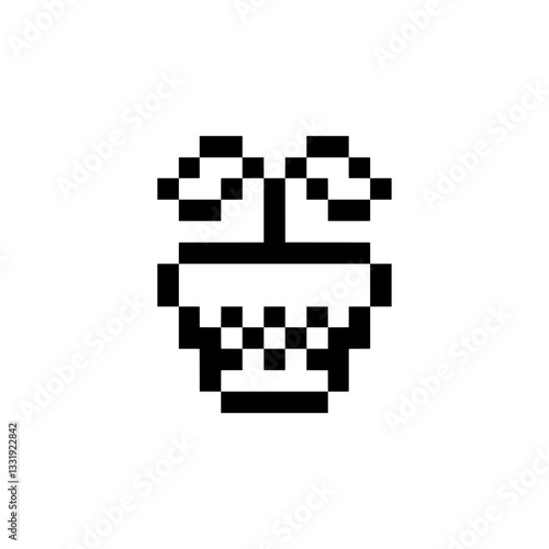 pot, flowerpot, vase, container, germinating, plant, environment, nature, growth, leaf, eco, germ bud, organic, grow, natural, growing, seed, symbol, stem, sapling, cute, retro, pixel, outline, border