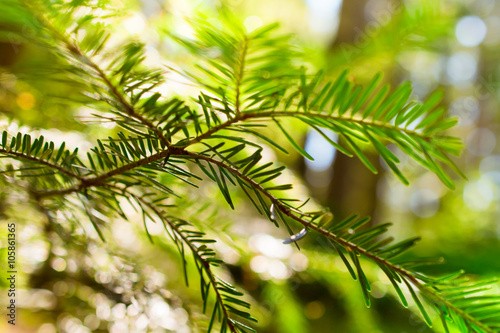 Spruce branch in a summer forest