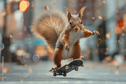 squirrel, skateboarding, street, city, urban, animal, rodent, tail, skateboard, miniature, park, sidewalk, concrete, pavement, blur, bokeh, motion, fast, speed, ride, trick, jump, fun, cute, funny, wildlife, nature, adventure, lifestyle, digital artwork, graphic design, artwork