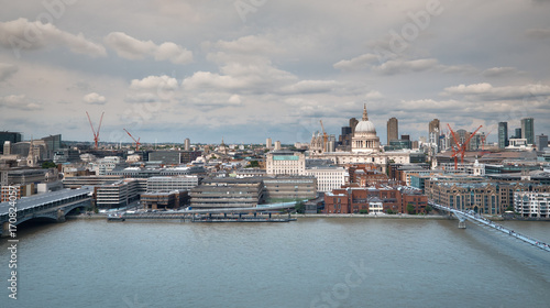 St Paul cathedral and Millennium bridge in London on a gloomy day
