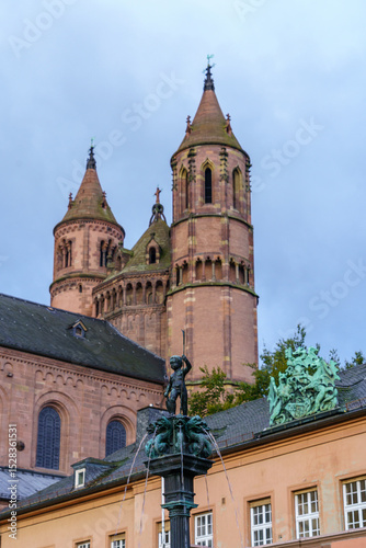 worm, saint-pierre, german, city landscape, cathedral, architecture, autumn, building, church, city, german, europa, european, german, gothic, historic, historical, history, landmark, mediaeval, historical building, old, religion, rhineland-palatinate, square, tower, town, travel, urban, fountain, statue