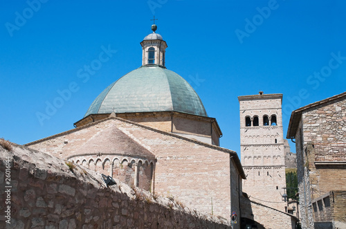 assisi, church, religion, tower, religious, dome, architecture, architectural, building, historical building, monumental, roofing, bell, toll, domed, facing, cross, arch, romanesque, slope, roof, marble, house, residential, palace, st, saint, cult, spiritual, column, balcony, window, imposing, green, style, structure, balustrade, construction, brick wall, perspective, tree, tour tourism, holiday maker, umbria, italy, blue, sky