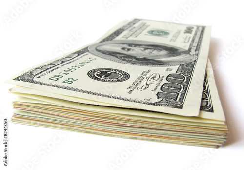 stack of $ 100 bills isolated