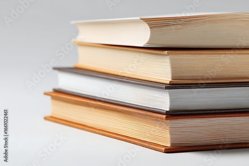 Stack of Closed Books, Different Tones, Neutral Background, Academic Texture, Reading